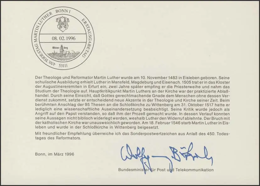 Ein Angebot in Briefmarken BRD Minister- & Sonderkarten - 952 weitere Angebote in dieser Kategorie