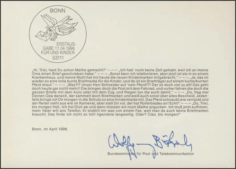 MinKa 11/1996 Block: Kinder, Postbote, Reiter, Pferd