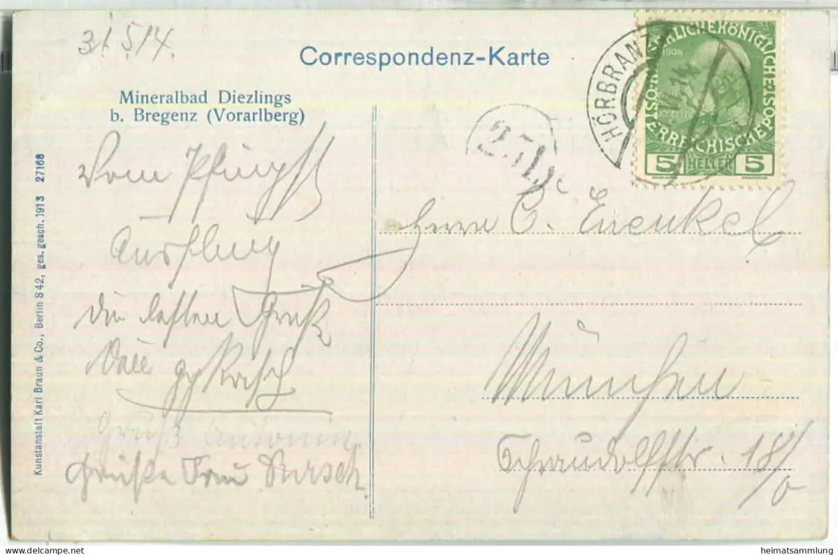 Mineralbad Diezlings - Badehaus - Verlag Karl Braun & Co. Berlin 1913 (E88850) gel. 1914
