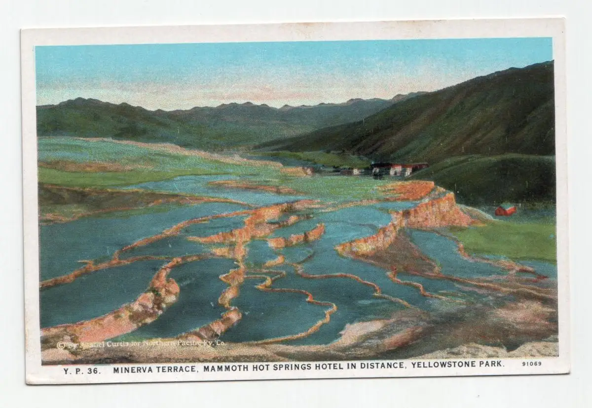 Minerva Terrace, Mammoth Hot Springs Hotel In Distance, Yellowstone Park.