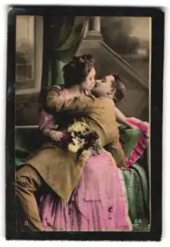Mini-AK Ein junges Paar beim knutschen auf der Couch