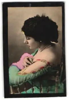 Mini-AK Junge Dame in melancholischer Haltung auf einem Stuhl