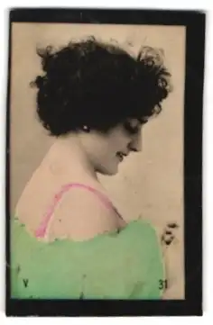 Mini-AK Junge Frau mit lockigem Haar im seitlichen Portrait
