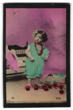 Mini-AK Junges Mädchen mit verstreut vor ihr liegenden Kugeln