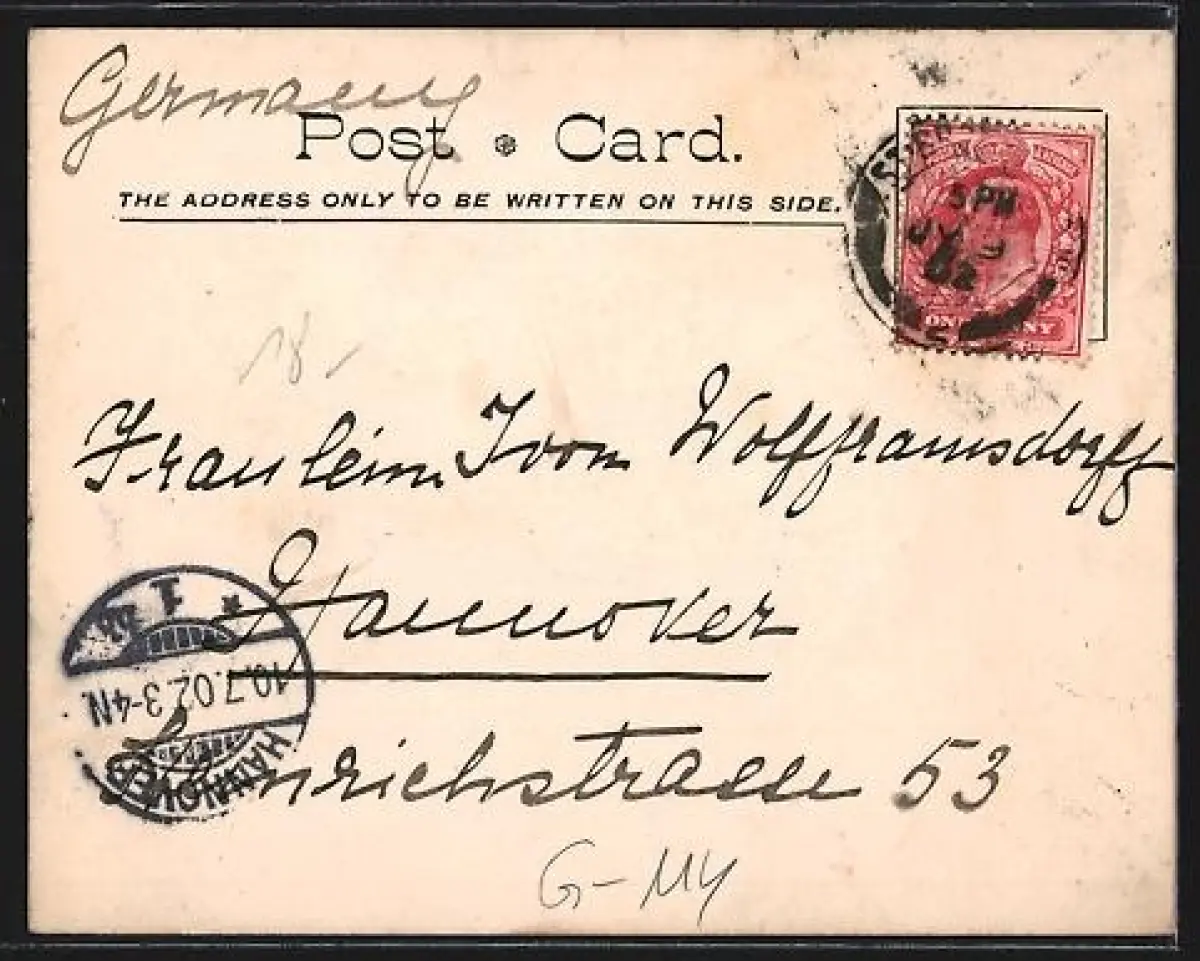 alte Ansichtskarte, gelaufen 1902, Stempelspur, guter Zustand Größe ca. 12,0 x 9,5cm