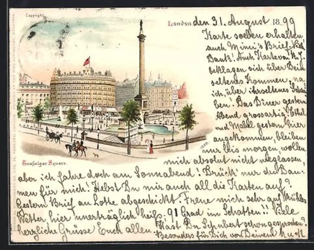 alte Ansichtskarte, gelaufen 1899, Stempelspur, Eckknicke li., guter Zustand