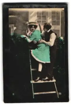 Mini-AK Mann hält Frau davon ab, über eine Hecke zu klettern