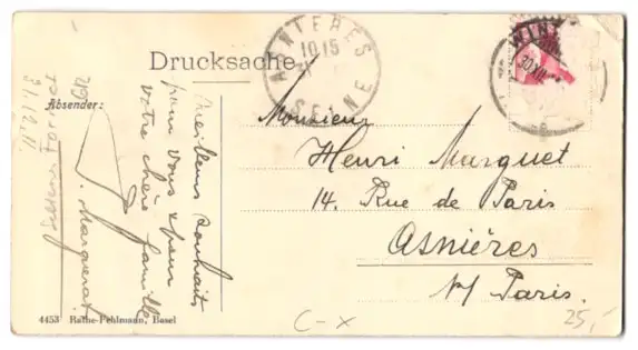 alte Ansichtskarte, gelaufen, Briefmarke entfernt, rückseitig Oberflächenschaden, Eckknick li. oben, guter Zustand