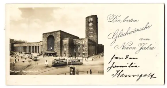 Mini-AK Stuttgart, Strassenbahn vor dem Hauptbahnhof