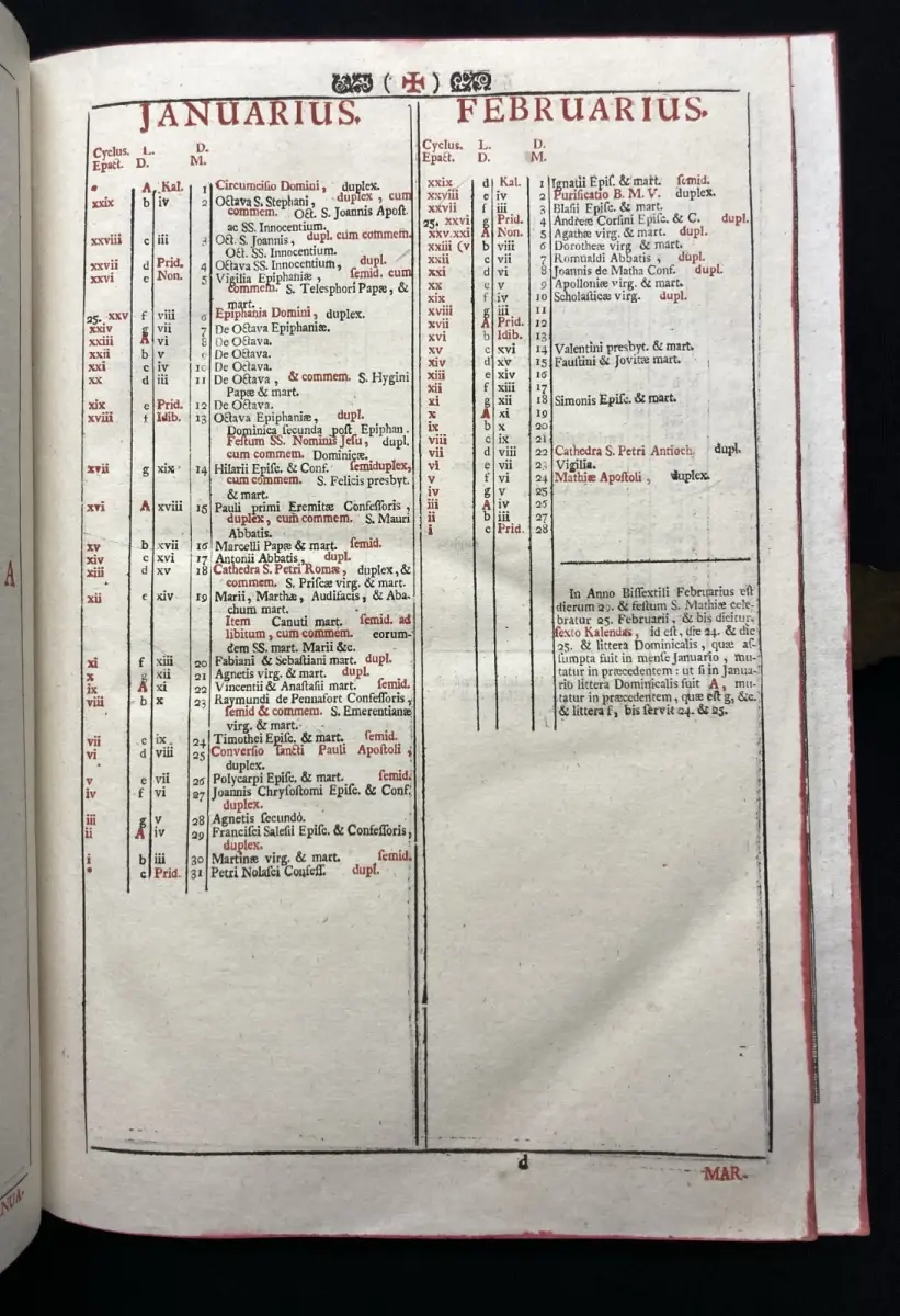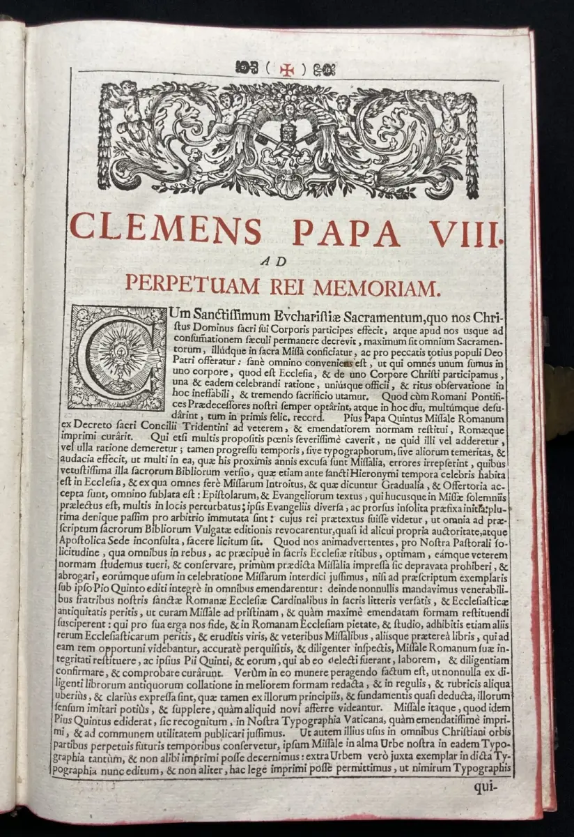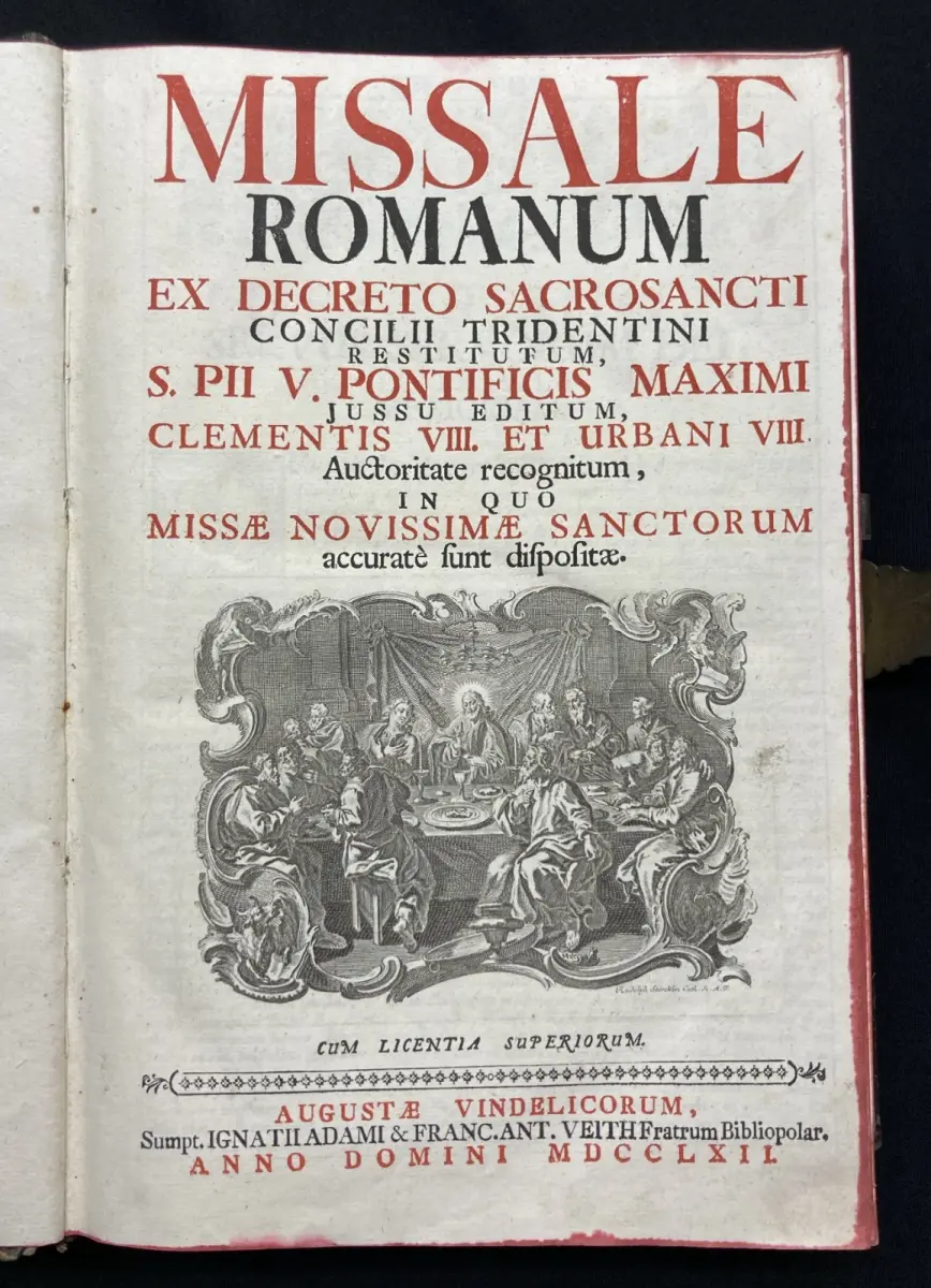 Das Römische Messbuch, wiederhergestellt durch Dekret des Heiligen Konzils von Trient, S. P. II V., auf Anordnung des Papstes Maximus, herausgegeben von Clemens VIII. und Urban VIII., überarbeitet durch die Autorität dessen, in dem die Messen der letzten Heiligen genau geordnet sind