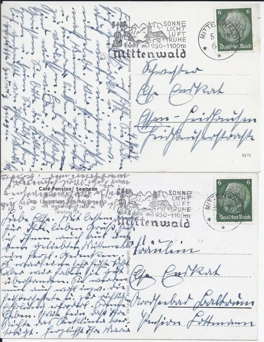 Mittenwald, 2 gebr. sw- AK, 1mal m. Gasthaus Café Seeheim. #1090
