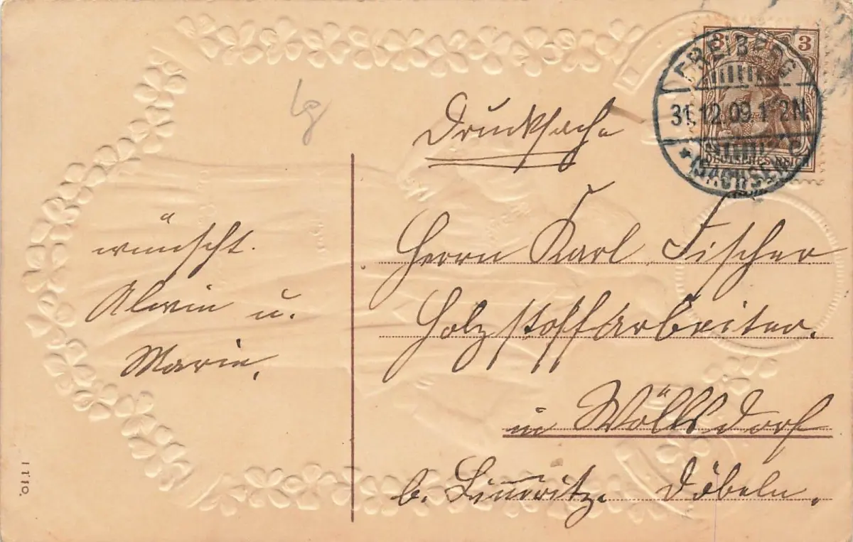 Rückseite: gelaufen 1909 von Freiberg (Sachsen)