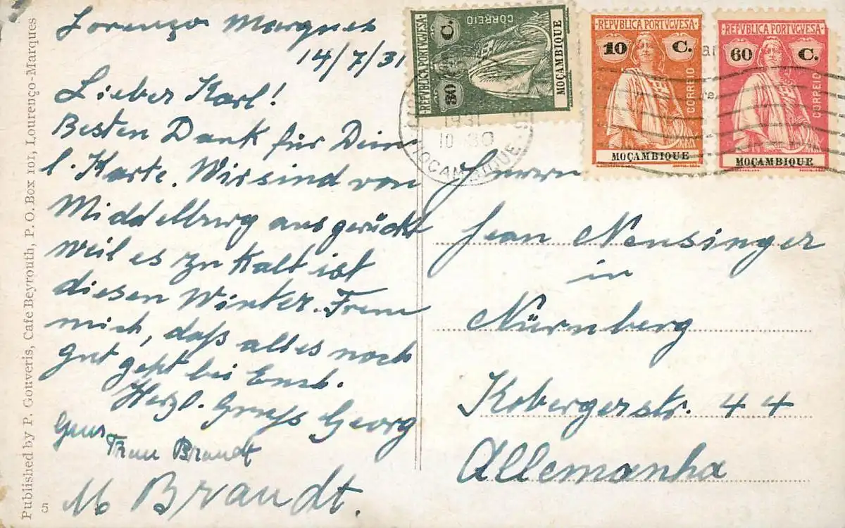 Mocambique 1931: Ansichtskarte Lourenco Marques