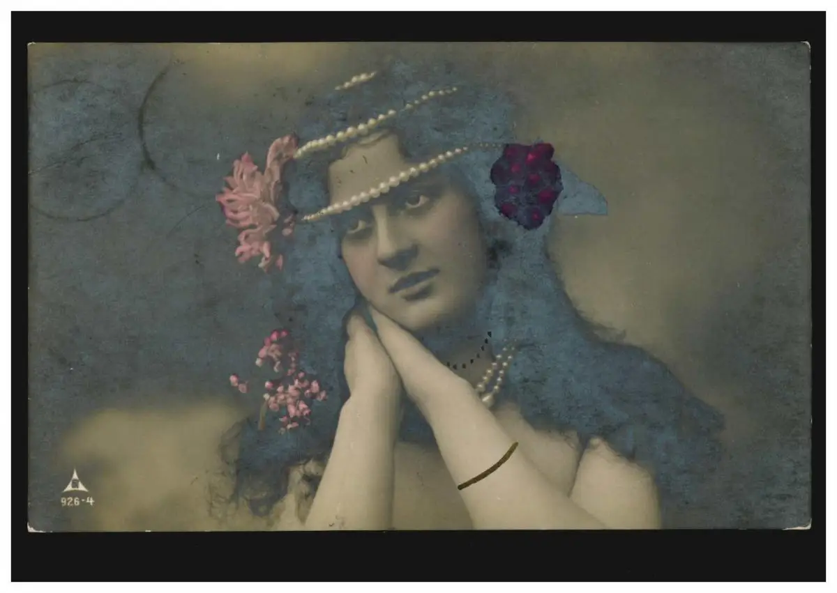 Mode-AK Besinnliche Frau mit Perlenkette und Blumen im Haar, COTTBUS 25.2.1909