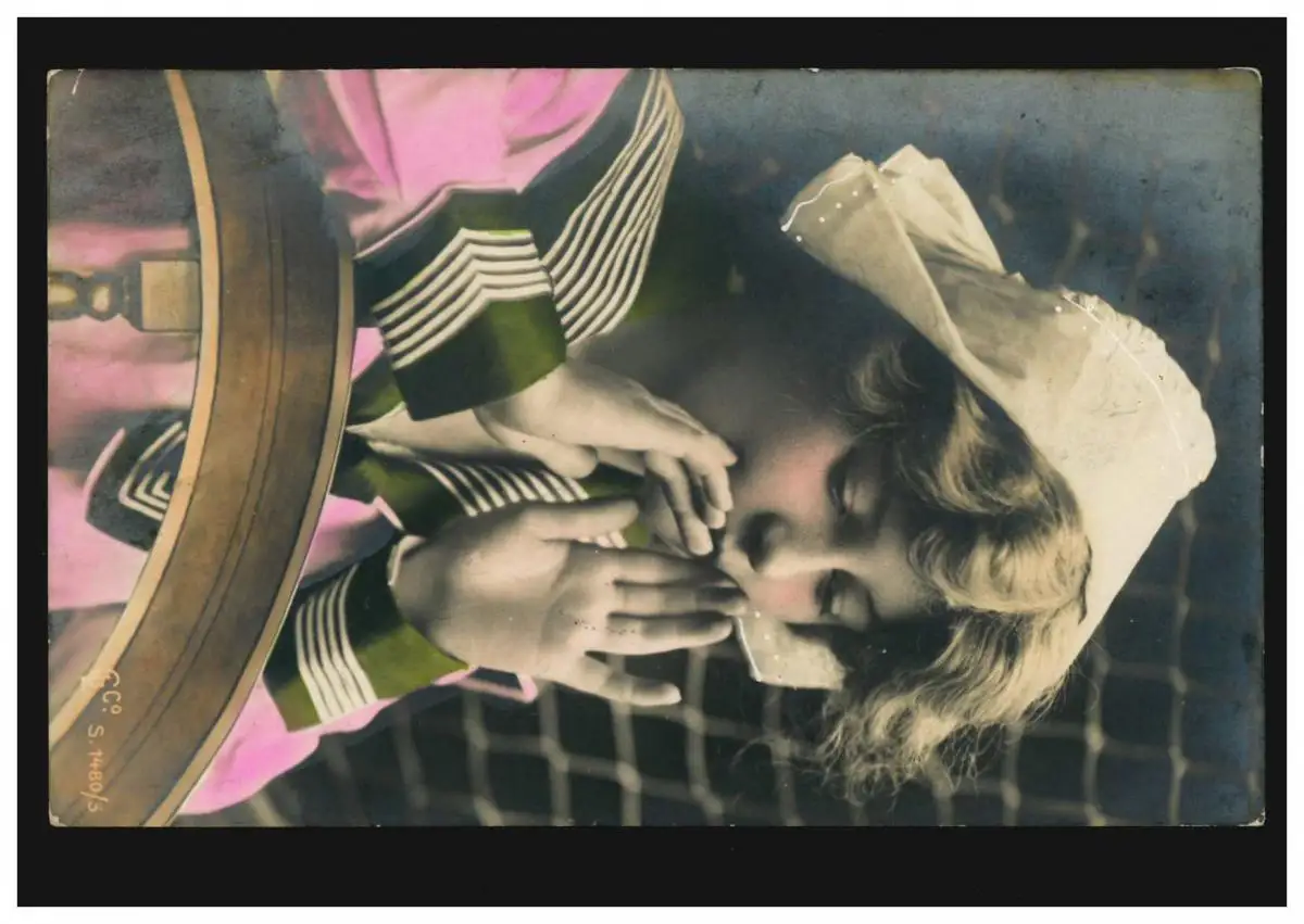 Mode-AK Frau im Matrosenanzug am Steuerruder, LEOBSCHÜTZ 18.5.1907 nach LIEBENAU