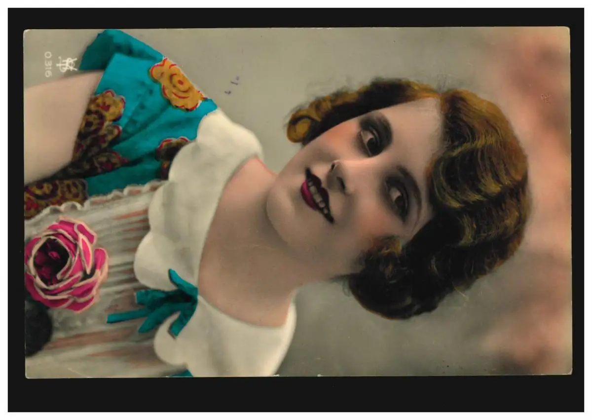 Mode-AK Frau in bunter Bluse mit Rosen, FRIEDRICHSHAFEN BODENSEE 9.5.1932