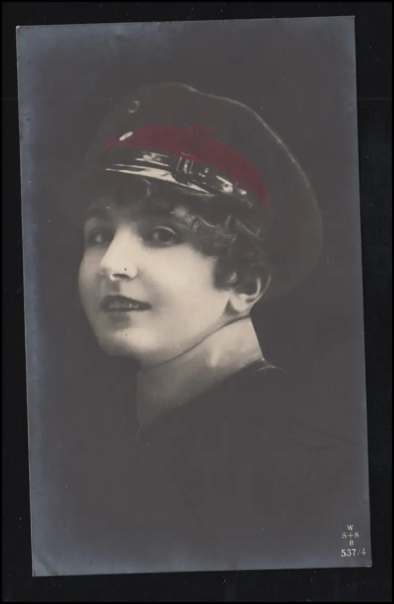 Mode-AK Frauenkopf mit Mütze, coloriert, Feldpost FALLINGBOSTEL12.10.1916