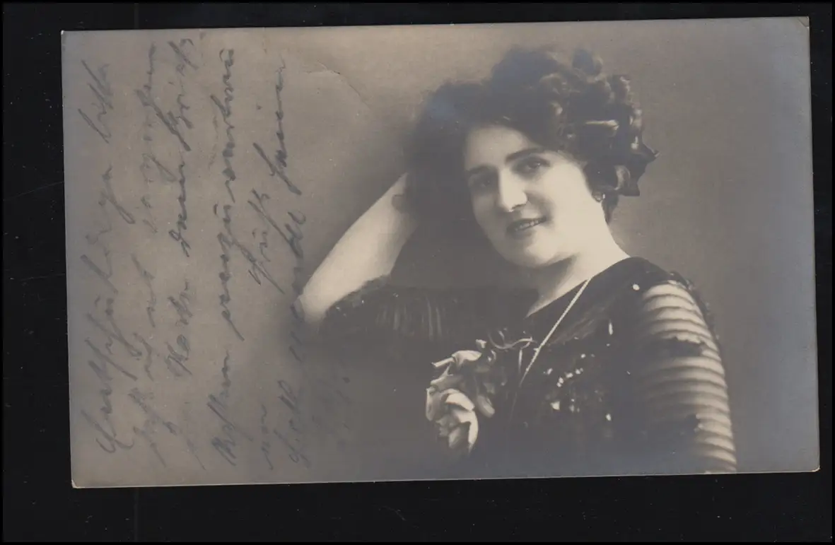 Mode-AK Lächelnde Frau mit Blumen, GLÜCKSTADT 1910