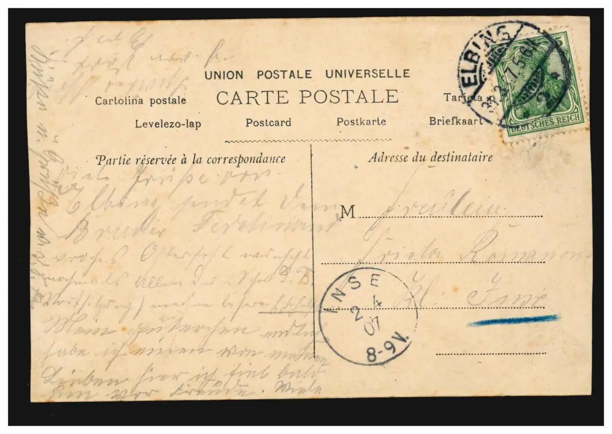 Mode-AK Mercier - Frau im weißem Kleid, ELBING 31.3.1907 nach INSE 2.4.07