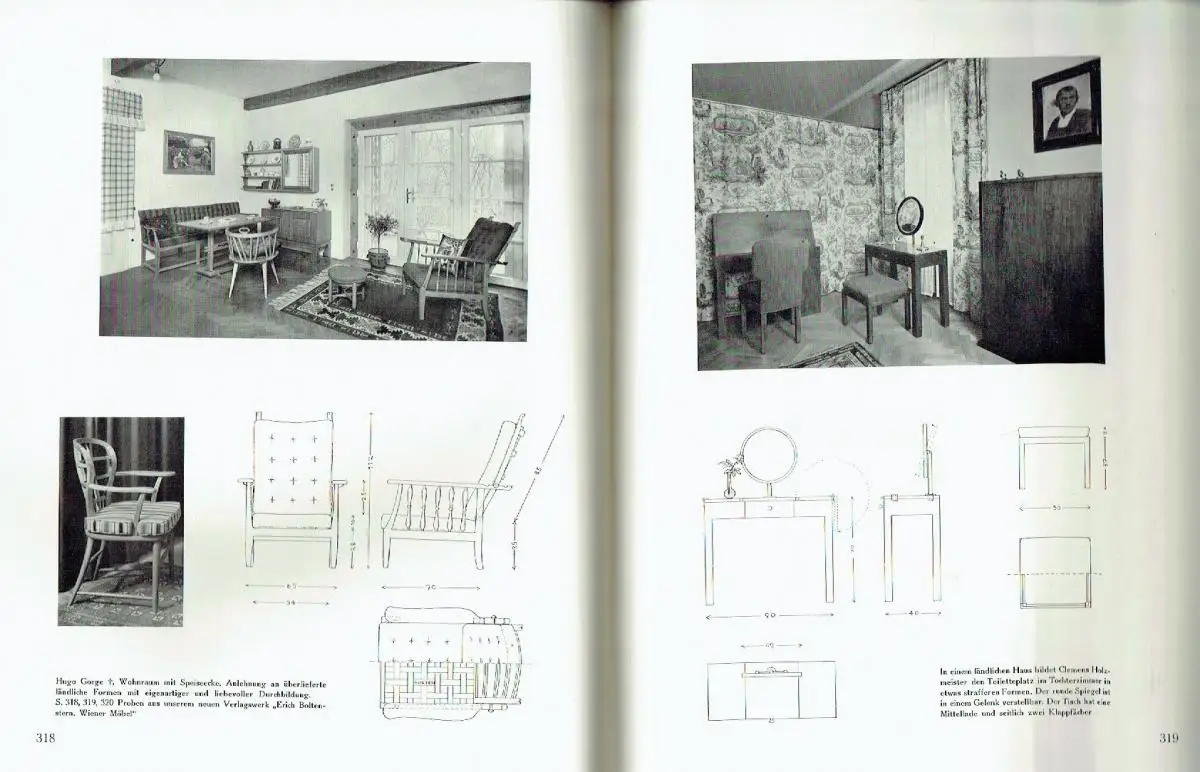 sehr guter Zustand, geringe Gebrauchs- und Alterungsspuren: Umschlag etwas vergilbt / gering verschmutzt - Seiten sauber und ordentlich - Umschlag und Seiten teils etwas eselsohrig - Deckel rechts 1 cm eingerissen, Volksnahe Bildkunst - Rudolf Koch. „Deutschland". Eine Landkarte - Ludwig Gies, Berlin. Monumentales Wandbild - Ernst Huber, Wien. Wandbild im Wiener Hartmannkeller - Hellmuth Uhrig, Stuttgart. Reliefs im Salzbergwerk - Fritz v. Graevenitz, Stuttgart. Adler und Engel der Tübinger Stiftskirche - Giovanni Ponti, Mailand. Grabkapelle der Familie Borletti - Giuseppe Pagano. Saal auf der Luftfahrtausstellung Mailand - Karl Knappe, München. Christophorus und Denkstein der Erhebung 1933 - Ländliche Wohnhäuser - William W. Wurster, San Franzisko. Strandhaus in Kalifornien - Randolph Evans. Landhaus und Einfamilienhaus zum Verkauf - Hermann Groth, Murnau. Wohnhaus beim Staffelsee - Wiener Möbel - Arbeiten von Frank & Wlach, Hugo Gorge, Clemens Holzmeister, Walther Sobotka, Hofmann & Augenfeld, J. Groag, Otto Niedermoser (10 Seiten) - Erziehung zum Bauen - Arbeiten aus der Abteilung Architektur der Darmstädter Hochschule (20 Seiten) - Farbige Raumentwürfe - Paul Laszlo, Stuttgart. Schlafzimmer mit Einbauschränken - Bruno Kaminski, Berlin-Wilmersdorf. Wohnraum mit Blumenfenster - Mitteilungen aus der Fachwelt, kartoniert, ca. 23 x 29, 56 Seiten mit zahlreichen Bildern und 2 Farbtafeln + 12 Seiten Mitteilungen