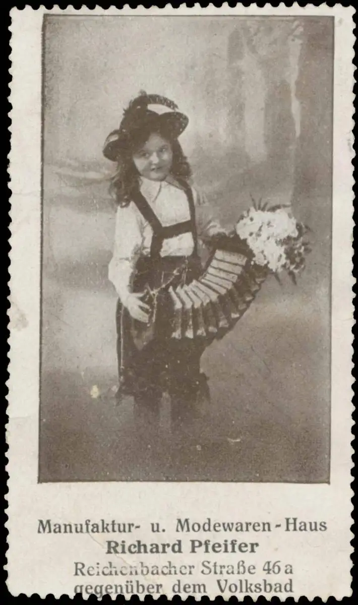 Manufaktur- und Modewarenhaus, Reichenbacher Straße 46a, Größe/Zustand: 7x4 , guter Zustand, Original alte Reklamemarke die seinerzeit für die Werbung benutzt wurde
