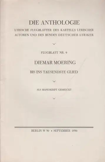Moering, Diemar: Bis ins tausendste Glied. Als Manuskript gedruckt. Die Anthologie. Lyrische Flugblätter des Kartells lyrischer Autoren und des Bundes deutscher Lyriker. Flugblatt Nr. 9. Druck: Bernhard Sporn, Zeulenroda, September 1930.