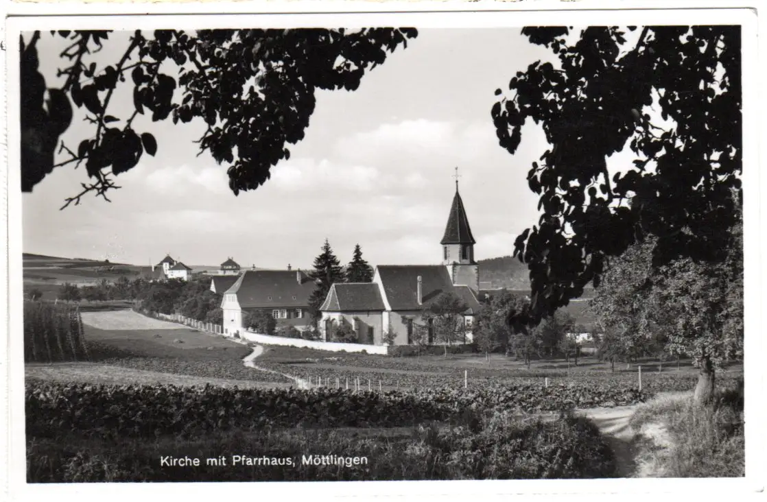 Möttingen, Kirche mit Pfarrhaus, 1938 gebr. sw-AK