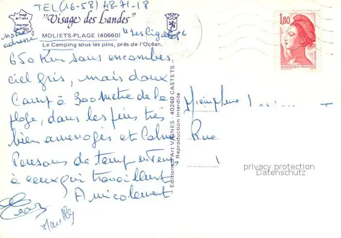 Moliets_Plage Camping les Cigales Le Camping sous les pins pres de l'Ocean Moliets_Plage postalisch gelaufen nach 1965 Erhaltung siehe scans [WerneD78] WernPID7