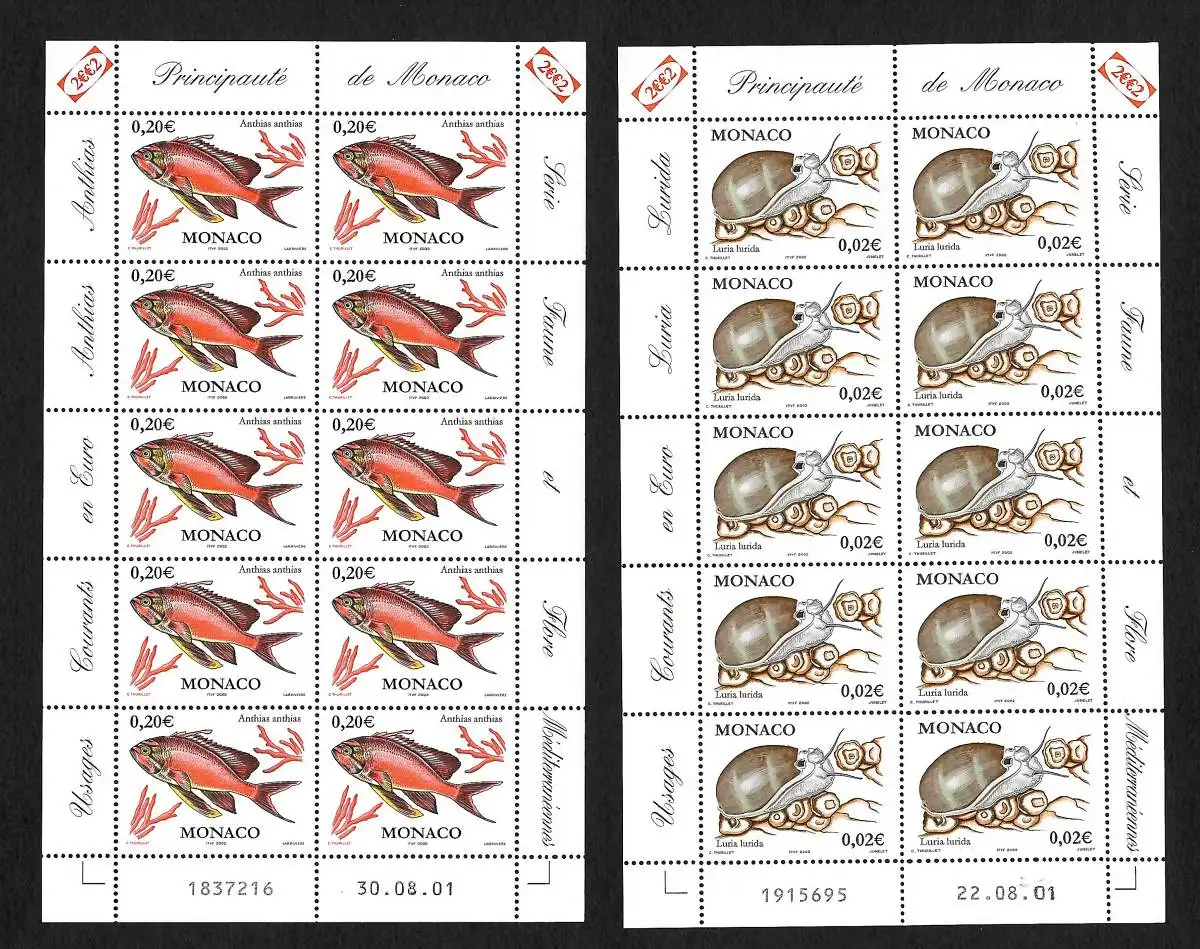 Monaco 2002: Schnecke und Fahnenbarsch, Kleinbogen postfrisch