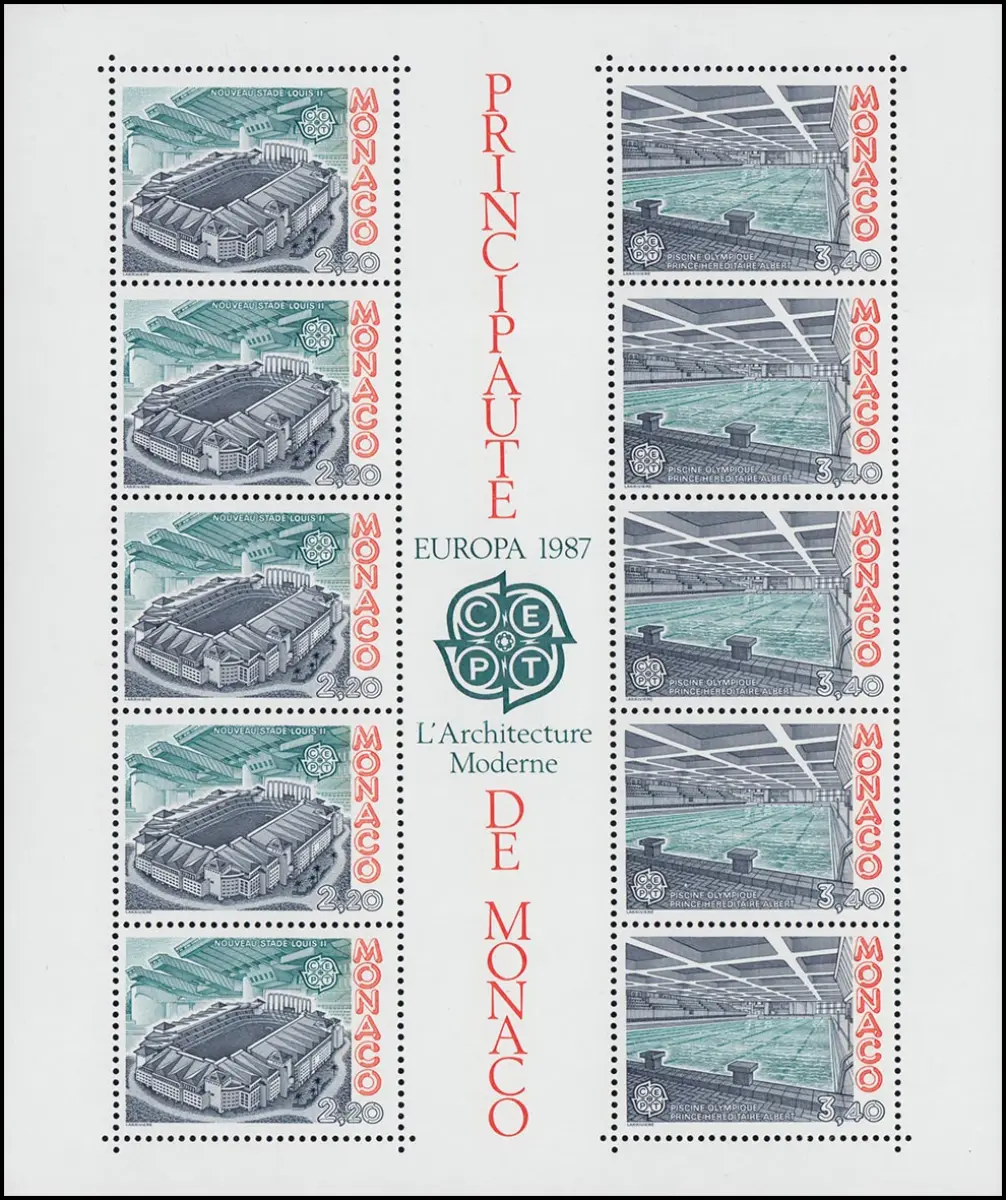 Monaco Block 35 Europaunion: Moderne Architektur 1987 ** / MNH