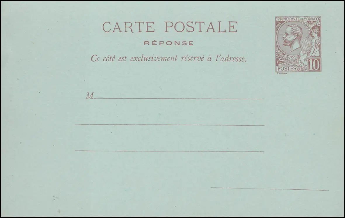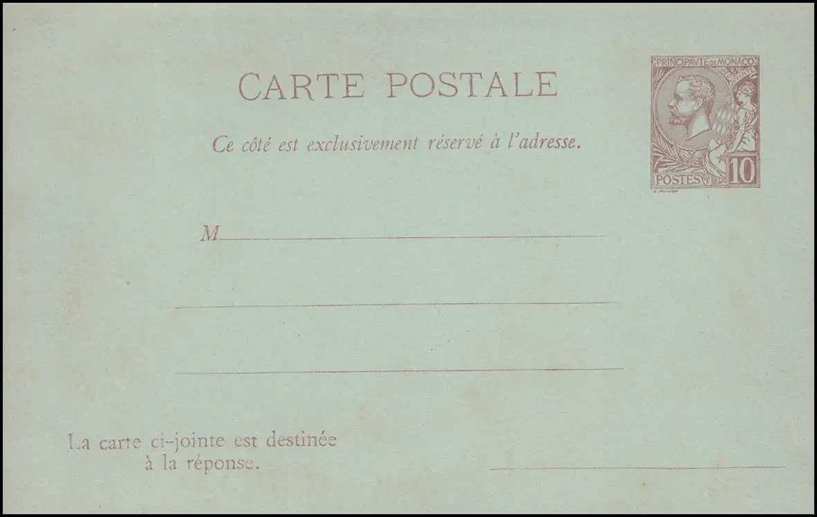 Monaco Postkarte 8 Fürst Albert I. 10/10 Cent. lilabraun, postfrisch ** / MNH