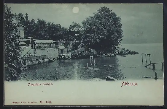 Mondschein-AK Abbazia, Angiolina Seebad im Vollmondlicht