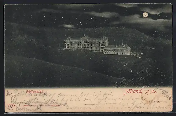 Mondschein-AK Alland /N.-Oe., Blick zur Heilanstalt