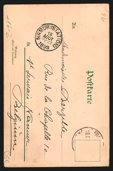 alte Ansichtskarte, gelaufen 1899, Briefmarke entfernt, guter Zustand