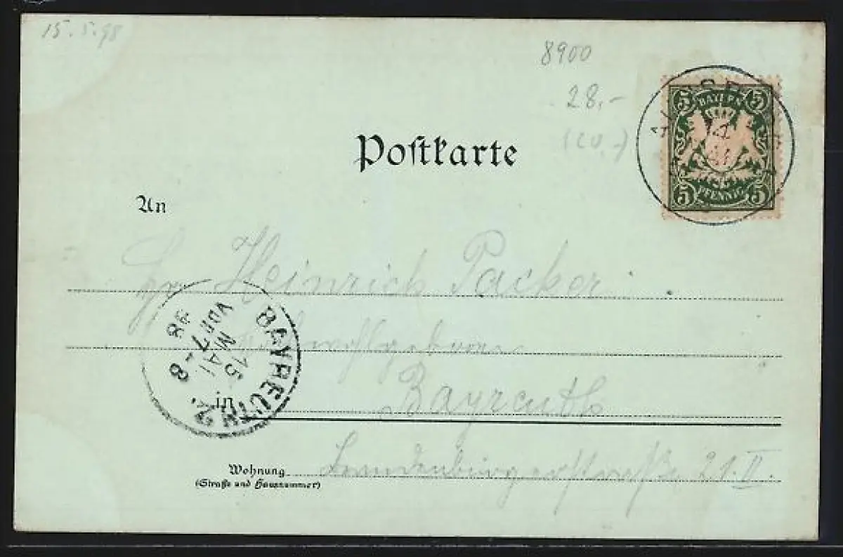 alte Ansichtskarte, gelaufen 1898, Eckknick re. oben, guter Zustand