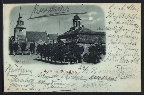 Mondschein-AK Boizenburg, Markplatz mit Kirche