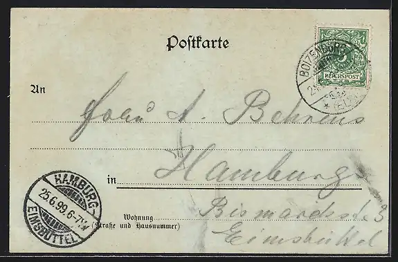 alte Ansichtskarte, gelaufen 1899, guter Zustand