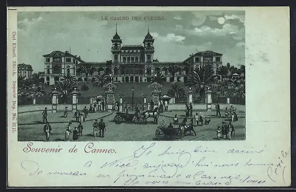 Mondschein-AK Cannes, Le Casino des Fleurs et les jardins animés