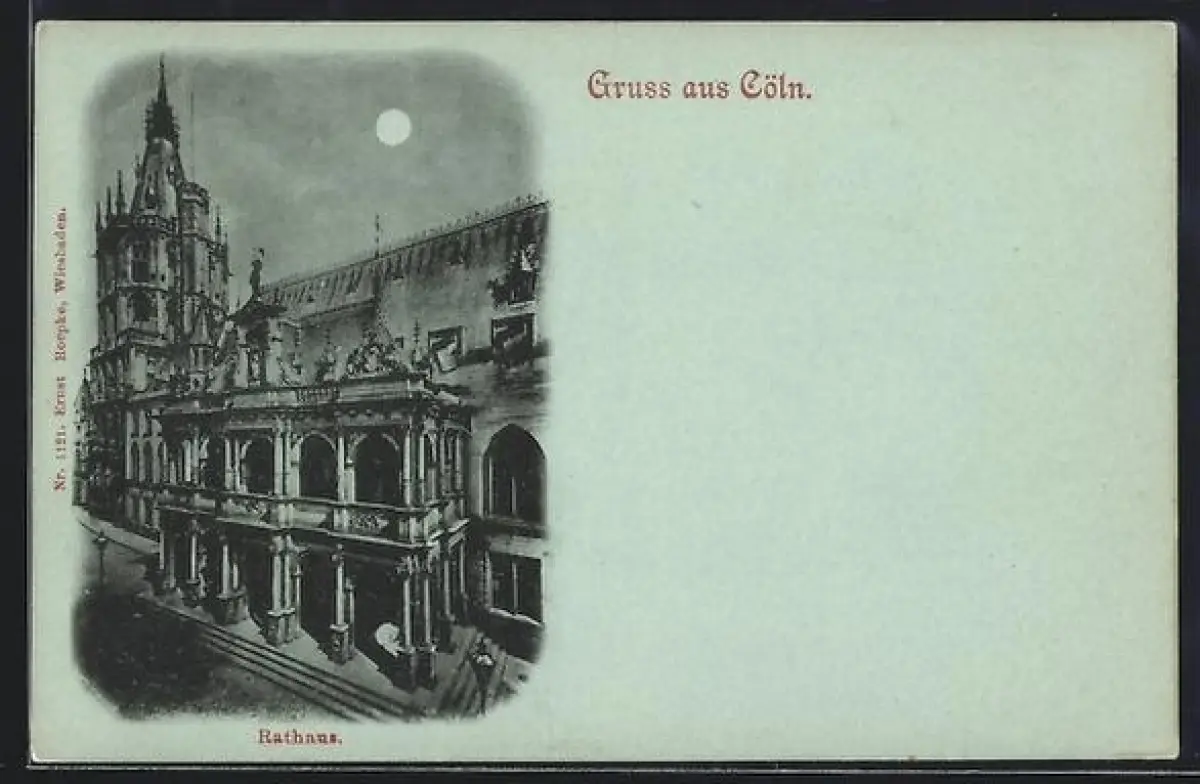 Mondschein-AK Cöln, Teilansicht vom Rathaus