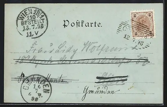 alte Ansichtskarte, gelaufen 1898, Eckknick re. oben, guter Zustand