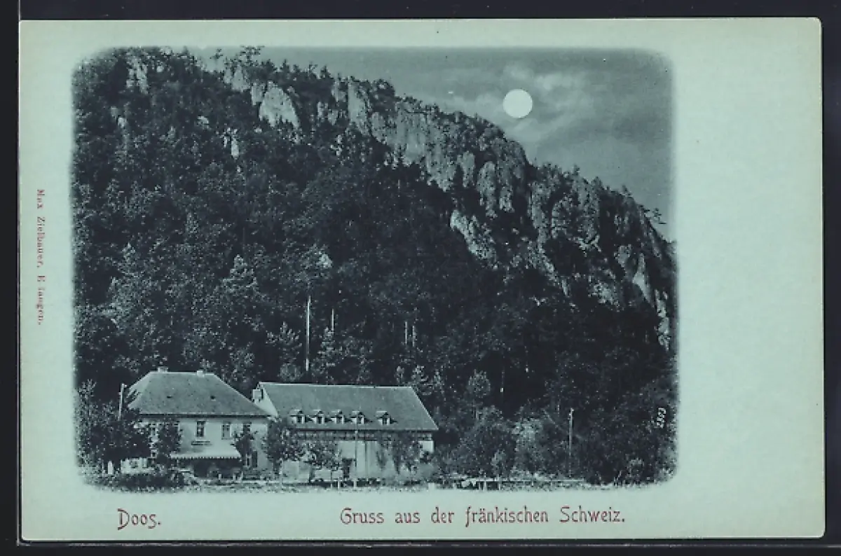 Mondschein-AK Doos /Fränkische Schweiz, Ortspartie mit Geschäft