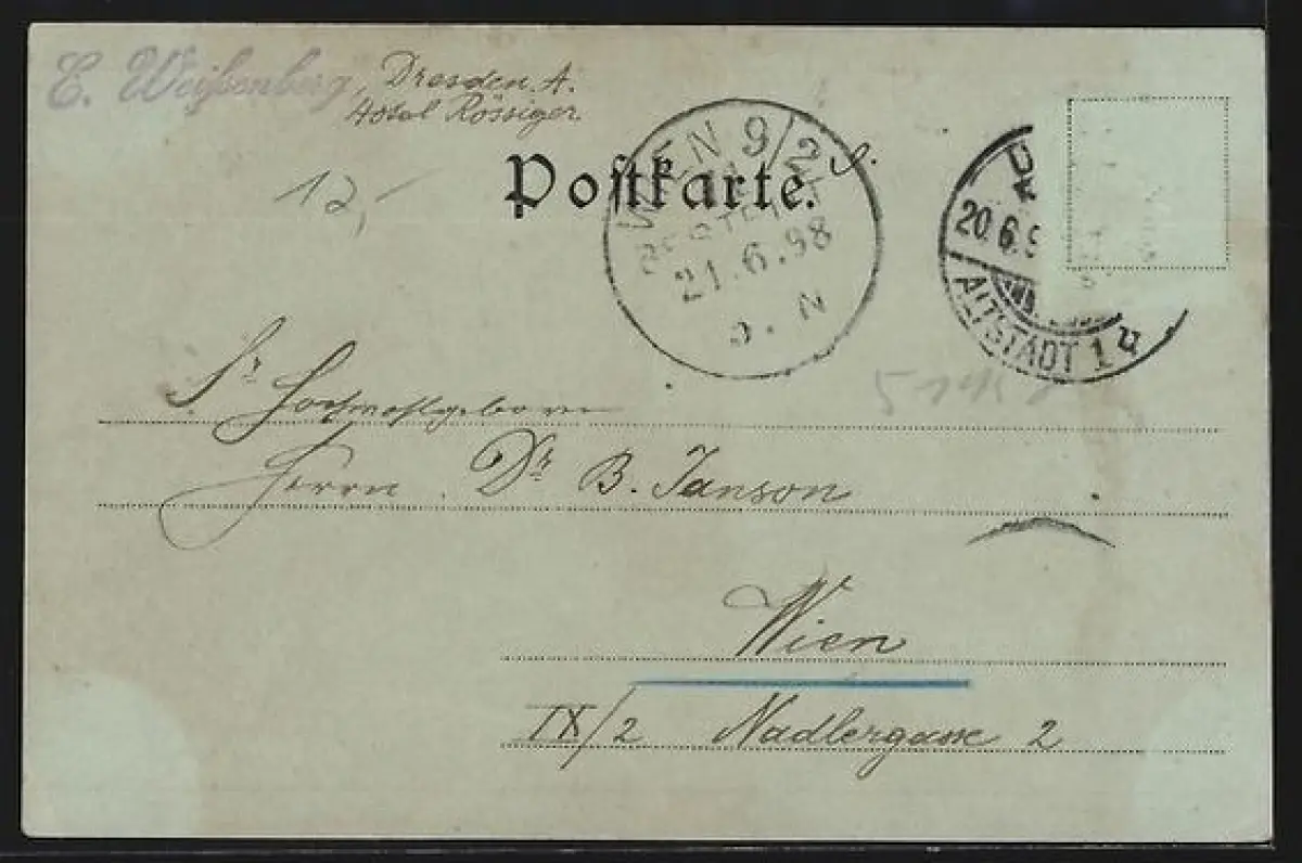 alte Ansichtskarte, gelaufen, Briefmarke entfernt, guter Zustand