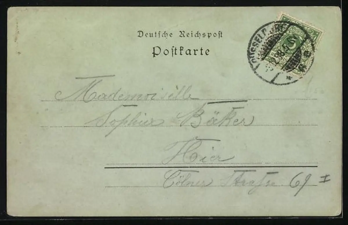 alte Ansichtskarte, gelaufen 1898, Eckknick li. oben, Bugspur mitte oben, guter Zustand