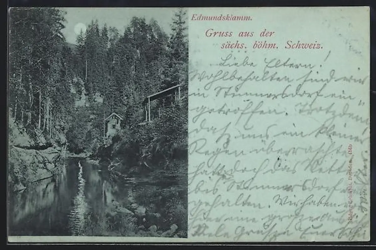 Mondschein-AK Edmundsklamm /Sächs. Böhm. Schweiz, Panorama