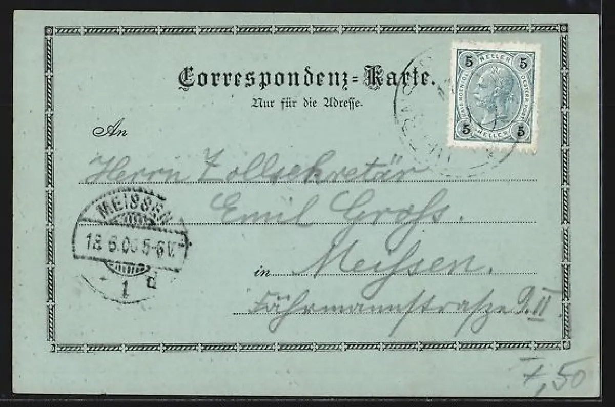 alte Ansichtskarte, gelaufen 1900, guter Zustand