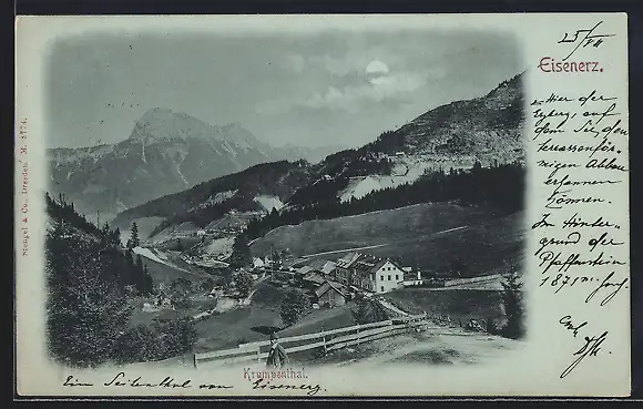 Mondschein-AK Eisenerz, Blick in das Krumpenthal