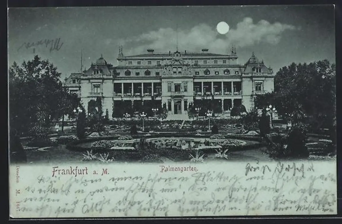Mondschein-AK Frankfurt-Westend, Palmengarten