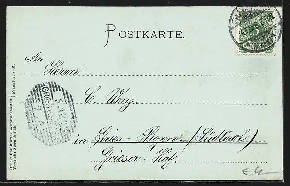 alte Ansichtskarte, gelaufen 1898, guter Zustand