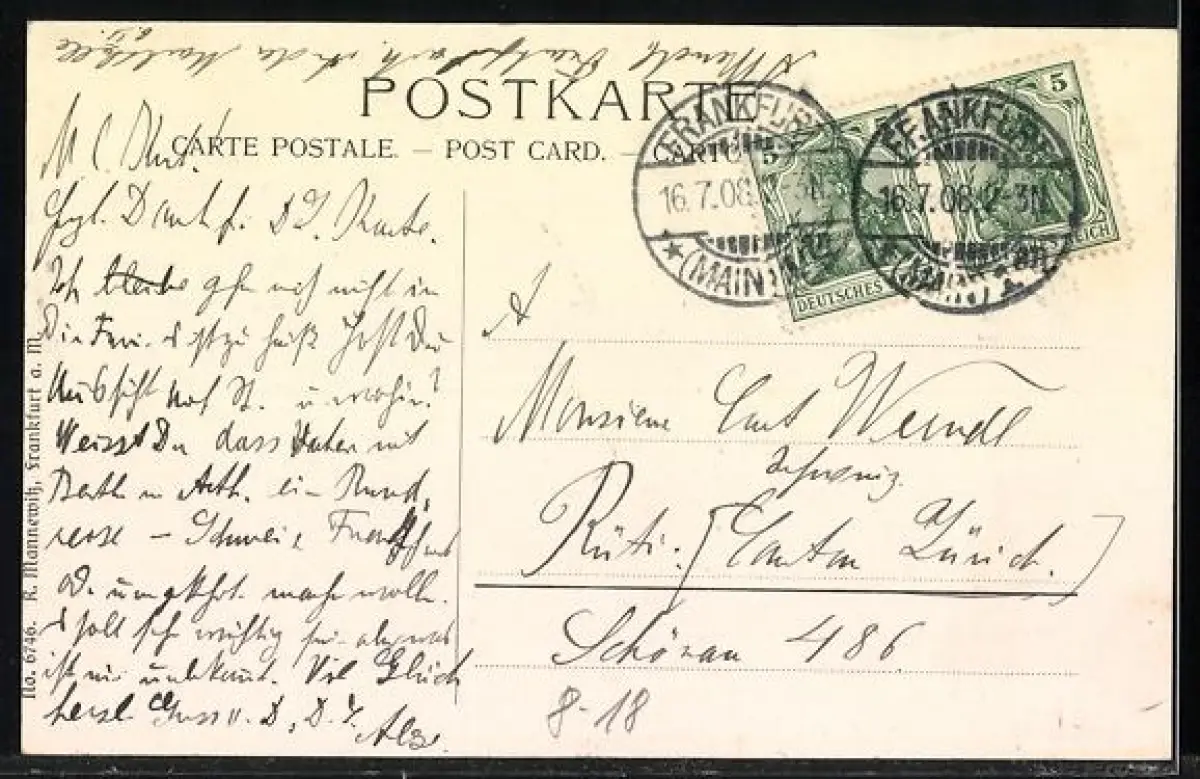 gelaufen 1908, guter Zustand