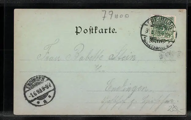 alte Ansichtskarte, gelaufen 1899, Stempelspur, guter Zustand